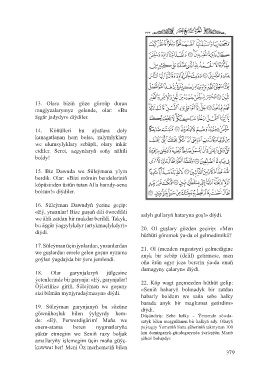 17. Süleýman üçin jynlardan, ynsanlardan 21. Ol (menden rugsatsyz) gelmedigine