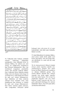 92. Ýalňyşlyk bilen bolmasa, möminiň bolan) dowzahdyr. Alla oňa gazap edip,