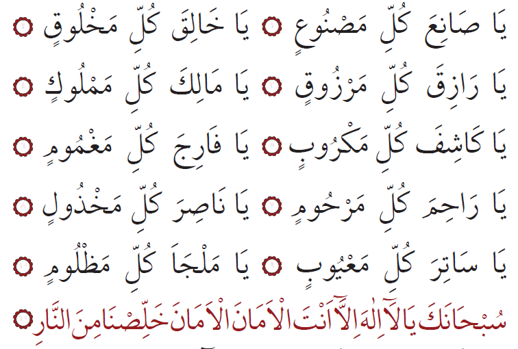 Sen ähli kemçilik we nogsanlardan päksiň, Senden başga bizi halas etjek hudaý ýok ahyryn! Bize amanlyk ber, amanlyk dileýäris. Bizi jähennem odundan halas et! (10)