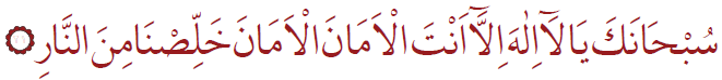 Sen ähli kemçilik we nogsanlardan päksiň, Senden başga bizi halas etjek hudaý ýok ahyryn! Bize amanlyk ber, amanlyk dileýäris. Bizi jähennem odundan halas et! (21)