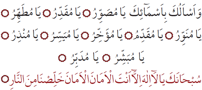 Sen ähli kemçilik we nogsanlardan päksiň, Senden başga bizi halas etjek hudaý ýok ahyryn! Bize amanlyk ber, amanlyk dileýäris. Bizi jähennem odundan halas et! (26)