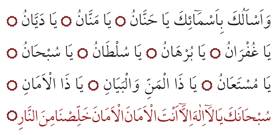 Sen ähli kemçilik we nogsanlardan päksiň, Senden başga bizi halas etjek hudaý ýok ahyryn! Bize amanlyk ber, amanlyk dileýäris. Bizi jähennem odundan halas et! (5)