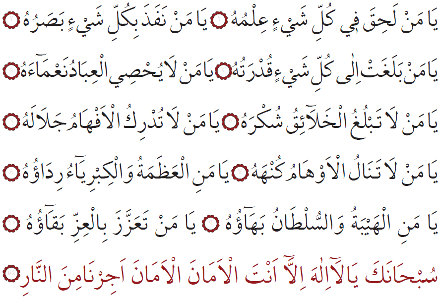 Sen ähli kemçilik we nogsanlardan päksiň, Senden başga bizi halas etjek hudaý ýok ahyryn! Bize amanlyk ber, amanlyk dileýäris. Bizi jähennem odundan halas et! (54)