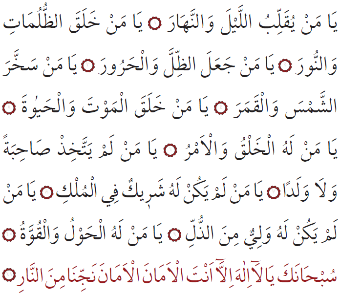 Sen ähli kemçilik we nogsanlardan päksiň, Senden başga bizi halas etjek hudaý ýok ahyryn! Bize amanlyk ber, amanlyk dileýäris. Bizi jähennem odundan halas et! (61)