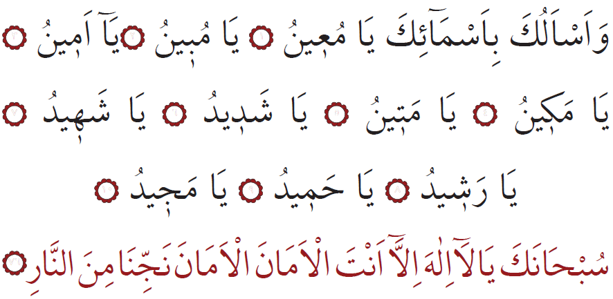 Sen ähli kemçilik we nogsanlardan päksiň, Senden başga bizi halas etjek hudaý ýok ahyryn! Bize amanlyk ber, amanlyk dileýäris. Bizi jähennem odundan halas et! (76)