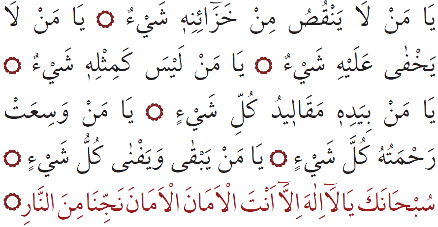 Sen ähli kemçilik we nogsanlardan päksiň, Senden başga bizi halas etjek hudaý ýok ahyryn! Bize amanlyk ber, amanlyk dileýäris. Bizi jähennem odundan halas et! (89)
