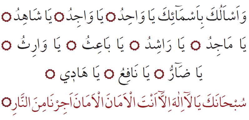 Sen ähli kemçilik we nogsanlardan päksiň, Senden başga bizi halas etjek hudaý ýok ahyryn! Bize amanlyk ber, amanlyk dileýäris. Bizi jähennem odundan halas et! (33)