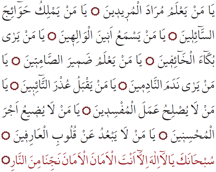 Sen ähli kemçilik we nogsanlardan päksiň, Senden başga bizi halas etjek hudaý ýok ahyryn! Bize amanlyk ber, amanlyk dileýäris. Bizi jähennem odundan halas et! (62)