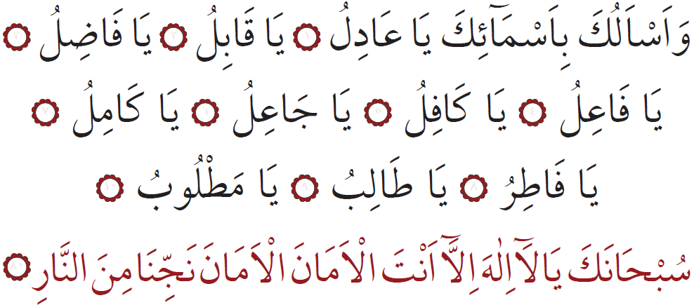 Sen ähli kemçilik we nogsanlardan päksiň, Senden başga bizi halas etjek hudaý ýok ahyryn! Bize amanlyk ber, amanlyk dileýäris. Bizi jähennem odundan halas et! (80)