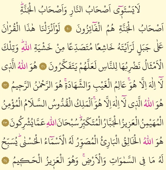 Haşr süresiniň soňky aýatlary