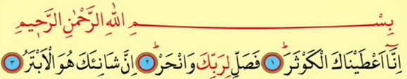 Innä a’taýnäkel kewser. Fesalli lirabbike wenhar. Inne şänieke hüwel’ebter.