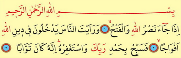 Izä jäe nasrullahi welfeth. We raeýtennäse ýedhulune fiý dinillähi efwäjä. Fesebbih bihamdi rabbike westagfirh, Innehu käne tewwäbä.