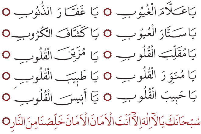 Sen ähli kemçilik we nogsanlardan päksiň, Senden başga bizi halas etjek hudaý ýok ahyryn! Bize amanlyk ber, amanlyk dileýäris. Bizi jähennem odundan halas et! (12)