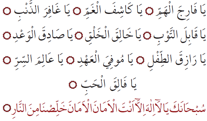Sen ähli kemçilik we nogsanlardan päksiň, Senden başga bizi halas etjek hudaý ýok ahyryn! Bize amanlyk ber, amanlyk dileýäris. Bizi jähennem odundan halas et! (20)