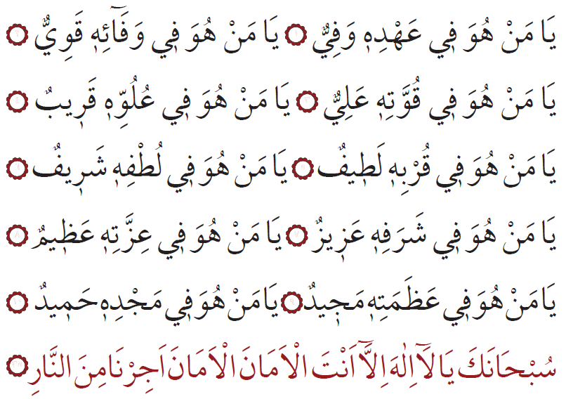 Sen ähli kemçilik we nogsanlardan päksiň, Senden başga bizi halas etjek hudaý ýok ahyryn! Bize amanlyk ber, amanlyk dileýäris. Bizi jähennem odundan halas et! (35)