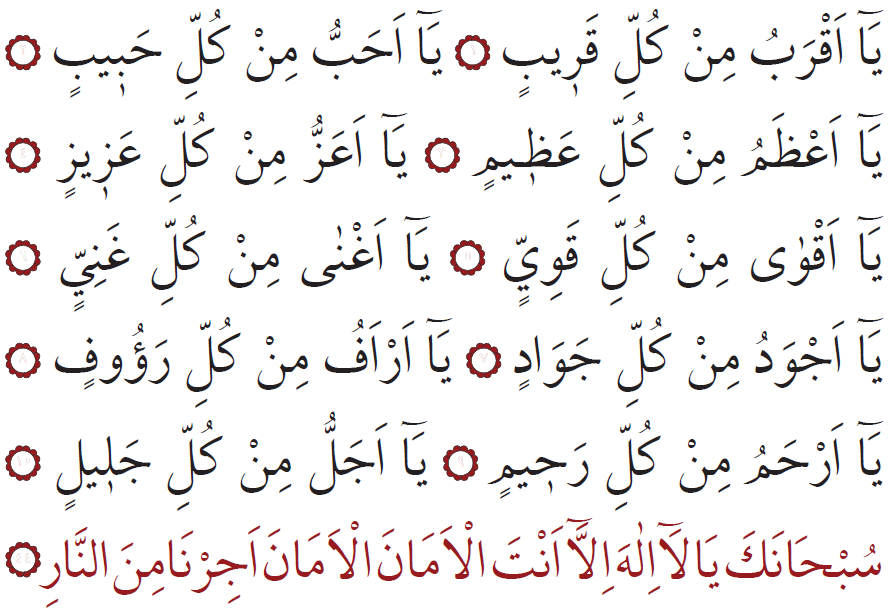 Sen ähli kemçilik we nogsanlardan päksiň, Senden başga bizi halas etjek hudaý ýok ahyryn! Bize amanlyk ber, amanlyk dileýäris. Bizi jähennem odundan halas et! (44)