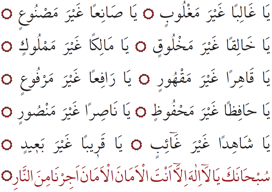Sen ähli kemçilik we nogsanlardan päksiň, Senden başga bizi halas etjek hudaý ýok ahyryn! Bize amanlyk ber, amanlyk dileýäris. Bizi jähennem odundan halas et! (46)
