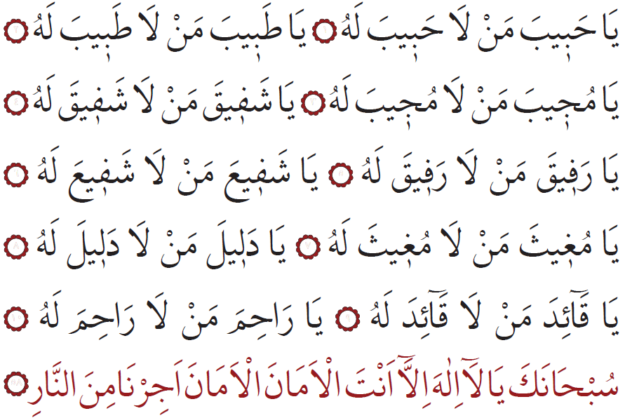 Sen ähli kemçilik we nogsanlardan päksiň, Senden başga bizi halas etjek hudaý ýok ahyryn! Bize amanlyk ber, amanlyk dileýäris. Bizi jähennem odundan halas et! (58)