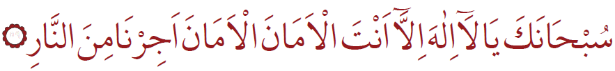Sen ähli kemçilik we nogsanlardan päksiň, Senden başga bizi halas etjek hudaý ýok ahyryn! Bize amanlyk ber, amanlyk dileýäris. Bizi jähennem odundan halas et! (59)