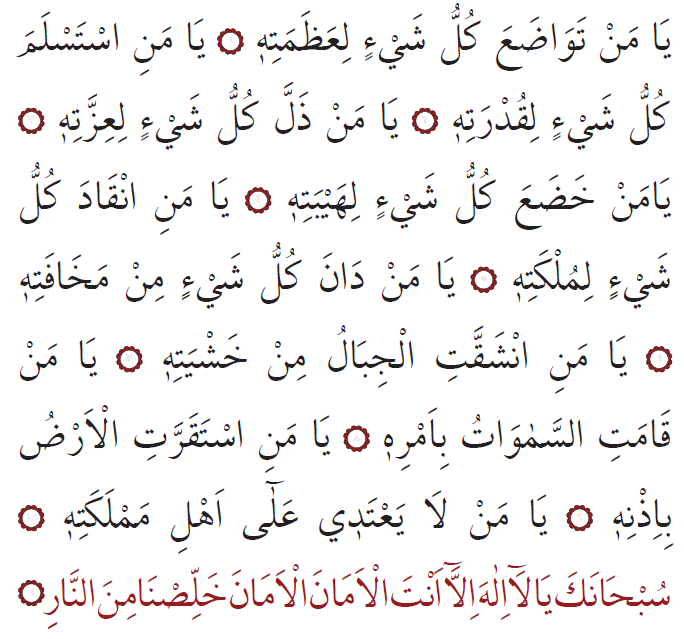 Sen ähli kemçilik we nogsanlardan päksiň, Senden başga bizi halas etjek hudaý ýok ahyryn! Bize amanlyk ber, amanlyk dileýäris. Bizi jähennem odundan halas et! (6)