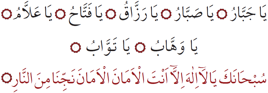 Sen ähli kemçilik we nogsanlardan päksiň, Senden başga bizi halas etjek hudaý ýok ahyryn! Bize amanlyk ber, amanlyk dileýäris. Bizi jähennem odundan halas et! (64)