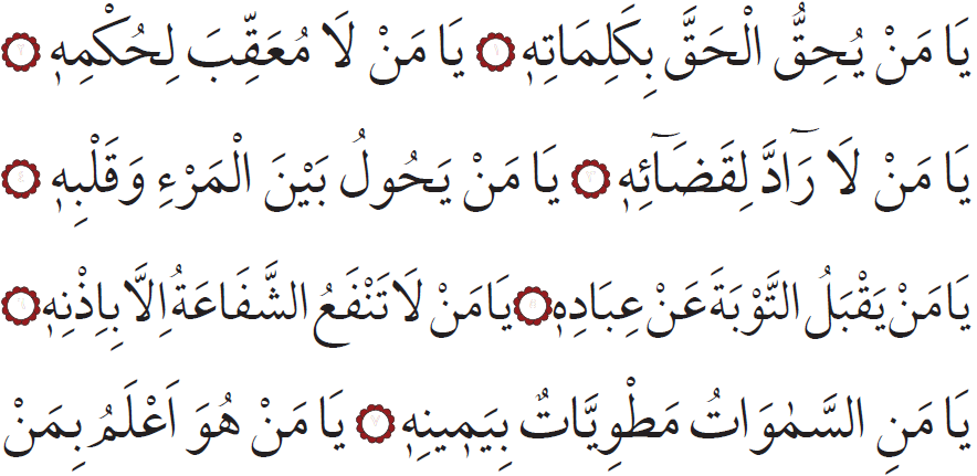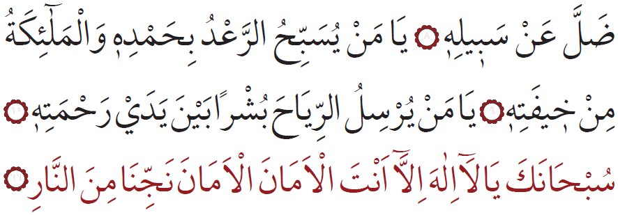 Sen ähli kemçilik we nogsanlardan päksiň, Senden başga bizi halas etjek hudaý ýok ahyryn! Bize amanlyk ber, amanlyk dileýäris. Bizi jähennem odundan halas et! (66)