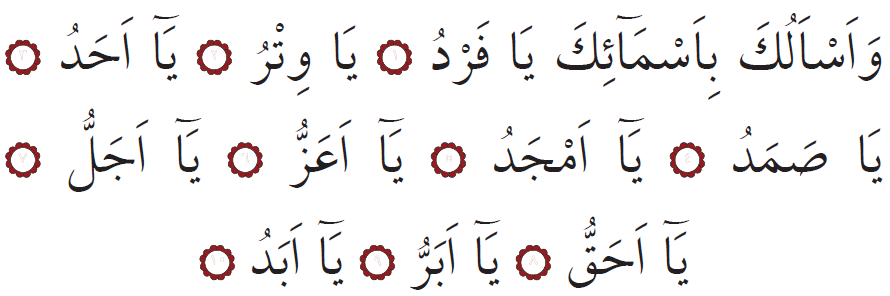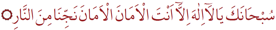 Sen ähli kemçilik we nogsanlardan päksiň, Senden başga bizi halas etjek hudaý ýok ahyryn! Bize amanlyk ber, amanlyk dileýäris. Bizi jähennem odundan halas et! (84)