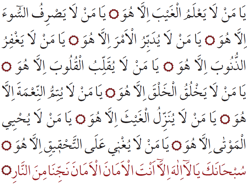 Sen ähli kemçilik we nogsanlardan päksiň, Senden başga bizi halas etjek hudaý ýok ahyryn! Bize amanlyk ber, amanlyk dileýäris. Bizi jähennem odundan halas et! (90)