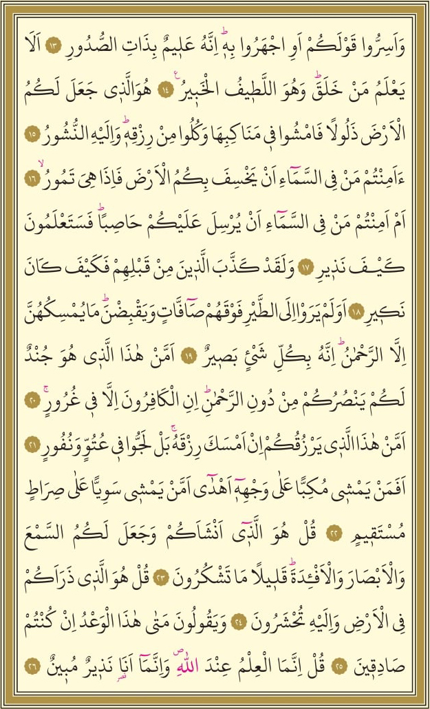 26. Aýt: «Takyk, (kyýamatyň geljegi baradaky) ylym Allanyň ýanyndadyr. Takyk, Men (diňe) äşgär bir duýduryjydyryn».